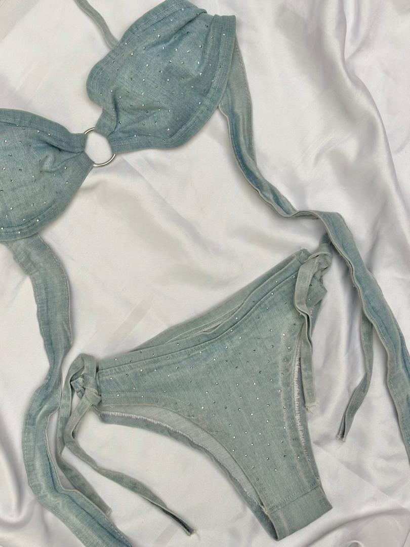 خانه ست لباس زیر ست جین نگین دار گره ای