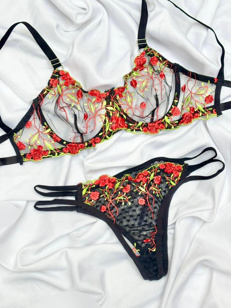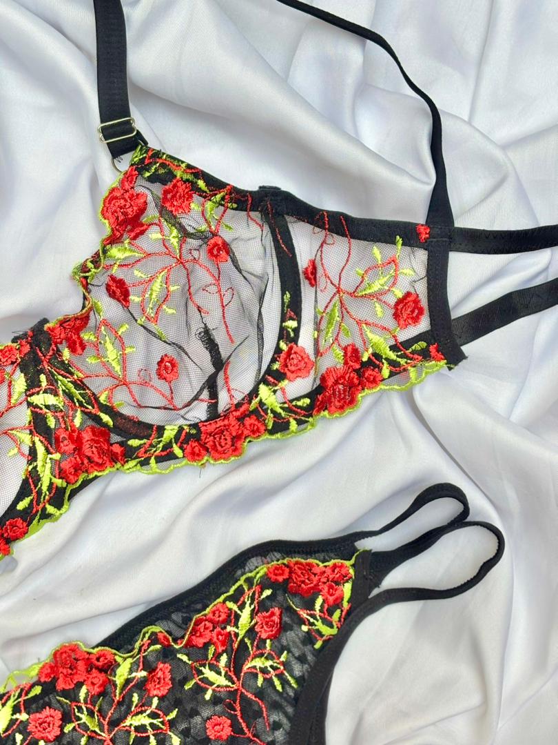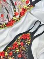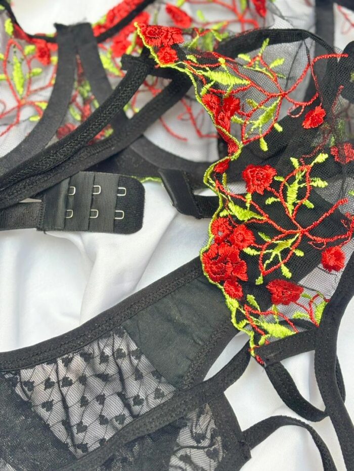 ست فنردار گلدوزی شده رز قرمز