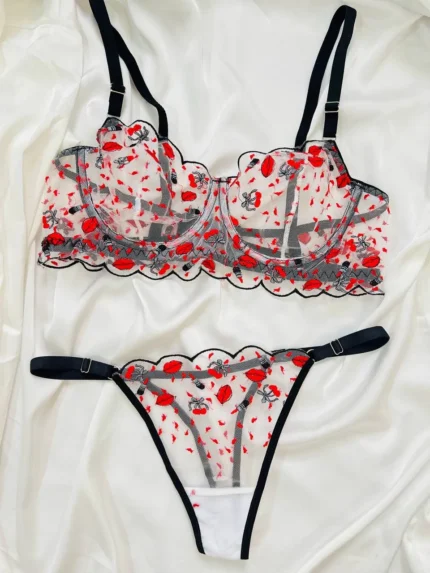 ست فنر دار شیشه ای سفید طرح قلب و گل