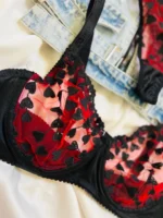 ست فنر دار قلب مشکی شورت ریگلاژی