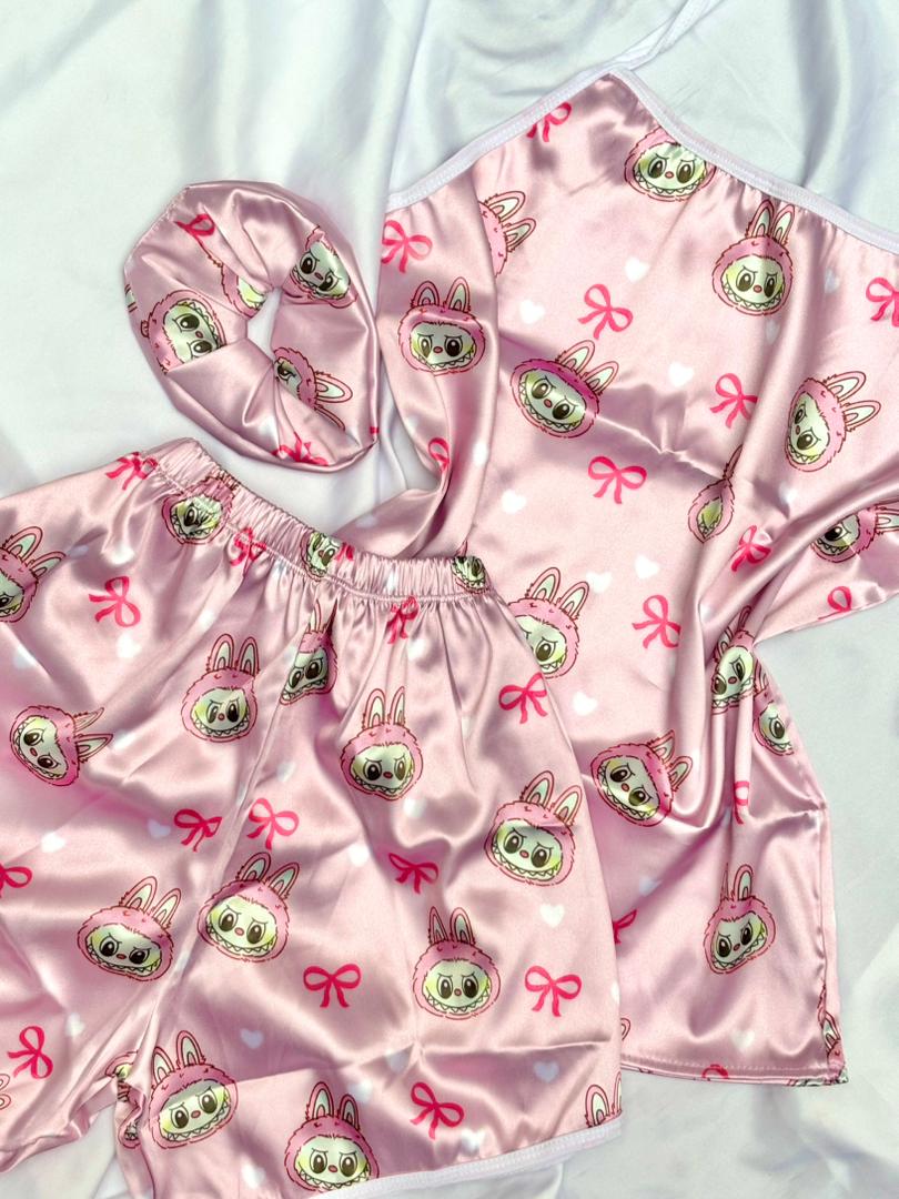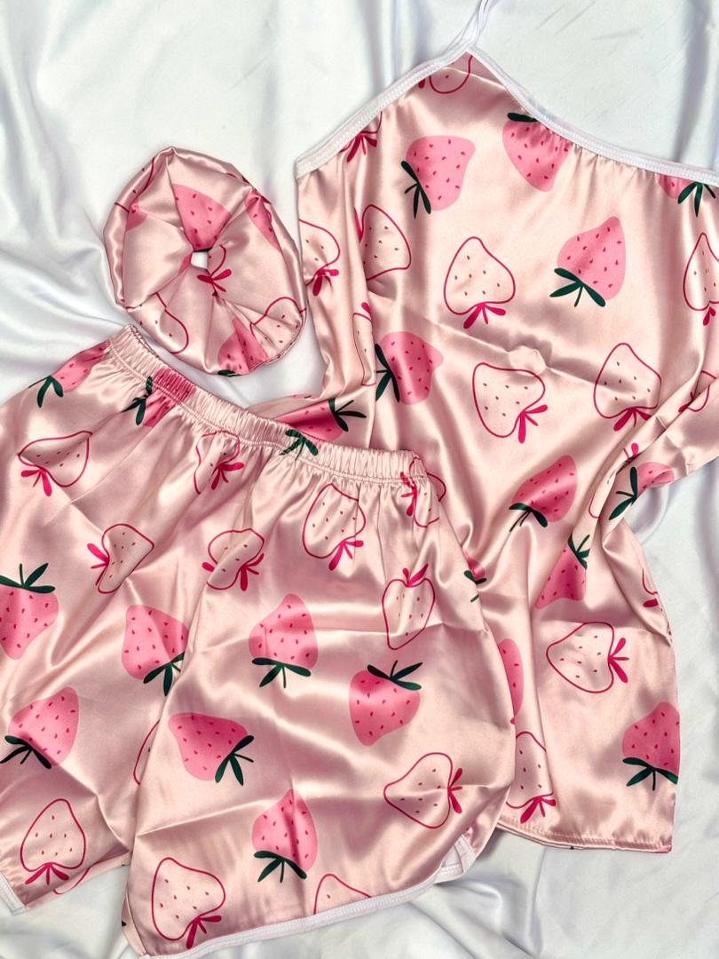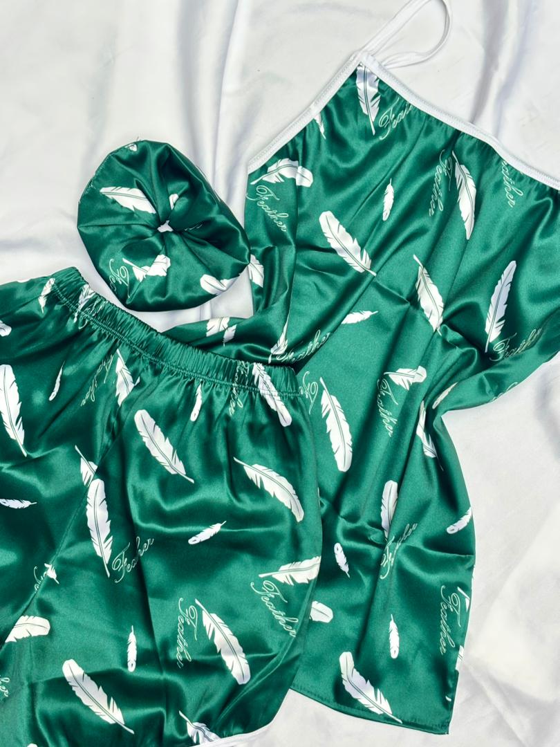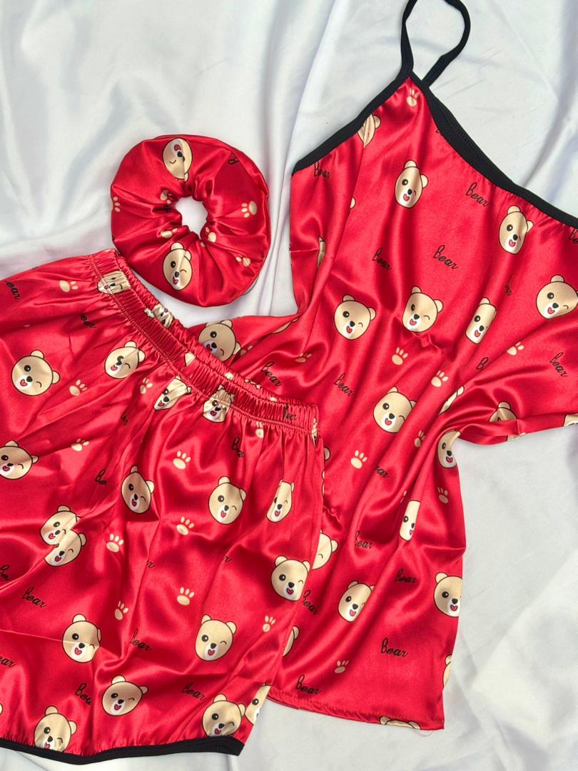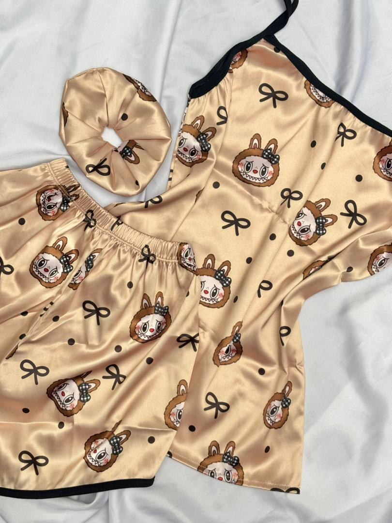 ست لباس خواب سه تیکه ساتن ال ایکس