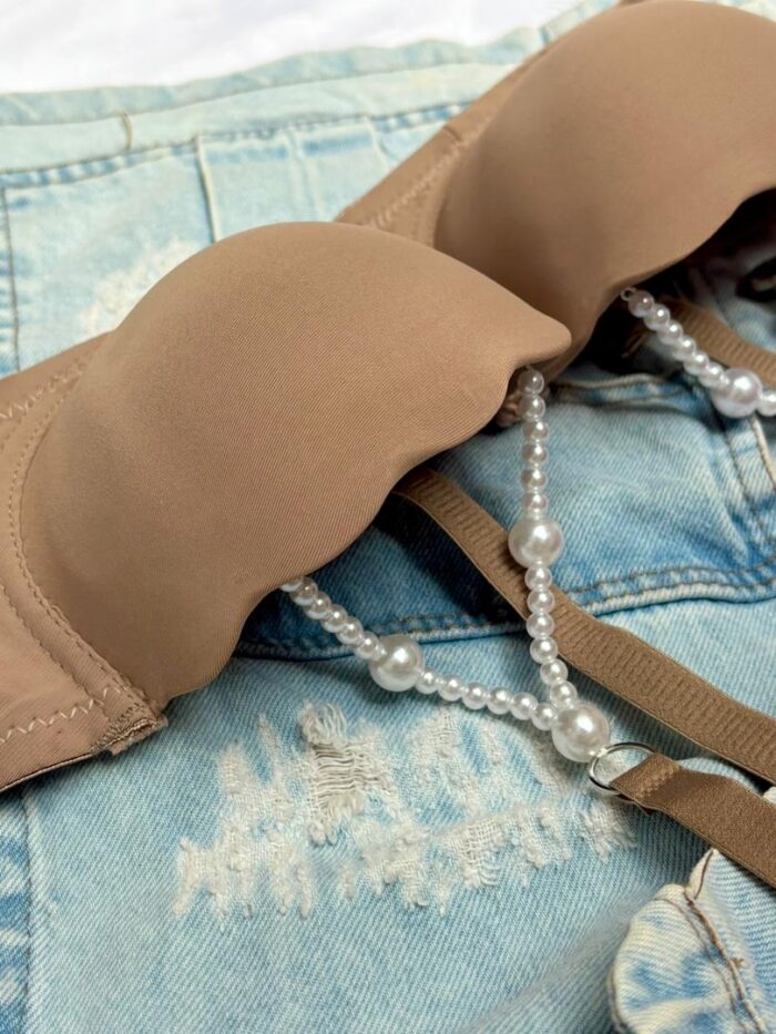 تزئینات مرواریدی ظریف: جزئیات مرواریدی روی سوتین، جلوهای لوکس و مناسب برای مجالس ویژه به آن میبخشد.